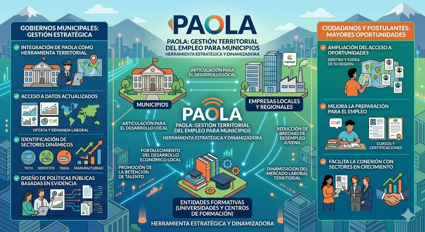 Los gobiernos municipales pueden integrar PAOLA como una herramienta de gestión territorial del empleo. Registrarse en la plataforma les permite acceder a datos actualizados sobre oferta y demanda laboral, identificar sectores con mayor dinamismo y diseñar políticas públicas basadas en evidencia.